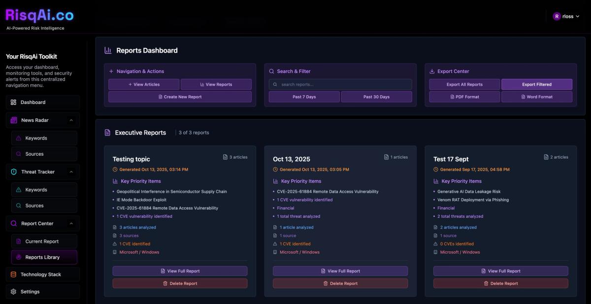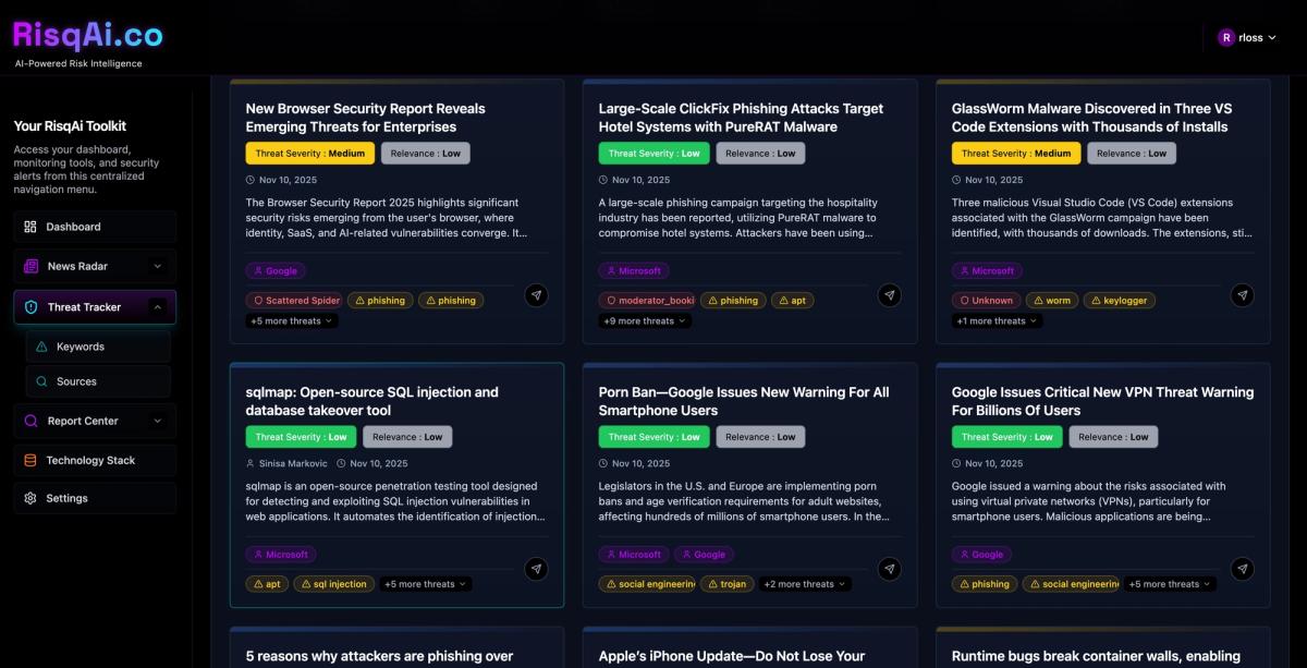 AI-powered threat detection and vulnerability management that delivers real-time risk assessment and adaptive security for modern enterprises. Frontend: Typescript, React, React Router, Tanstack Query, Zustand, Tailwind. Backend: Typescript, Node, Express, Drizzle, PostgreSQL. DevOps/CI-CD: Docker, GitHub, Azure.